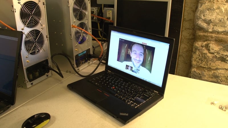 Mark Karpeles showing Daniel Mross the Mt. Gox servers in Tokyo, Japan in a scene from the documentary The Rise and Rise of Bitcoin by filmmaker Nicholas Mross.