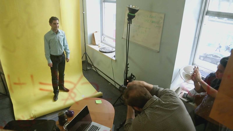 Charlie Shrem being photographed for a Businessweek article at his office in NYC in a scene from the documentary The Rise and Rise of Bitcoin by filmmaker Nicholas Mross.